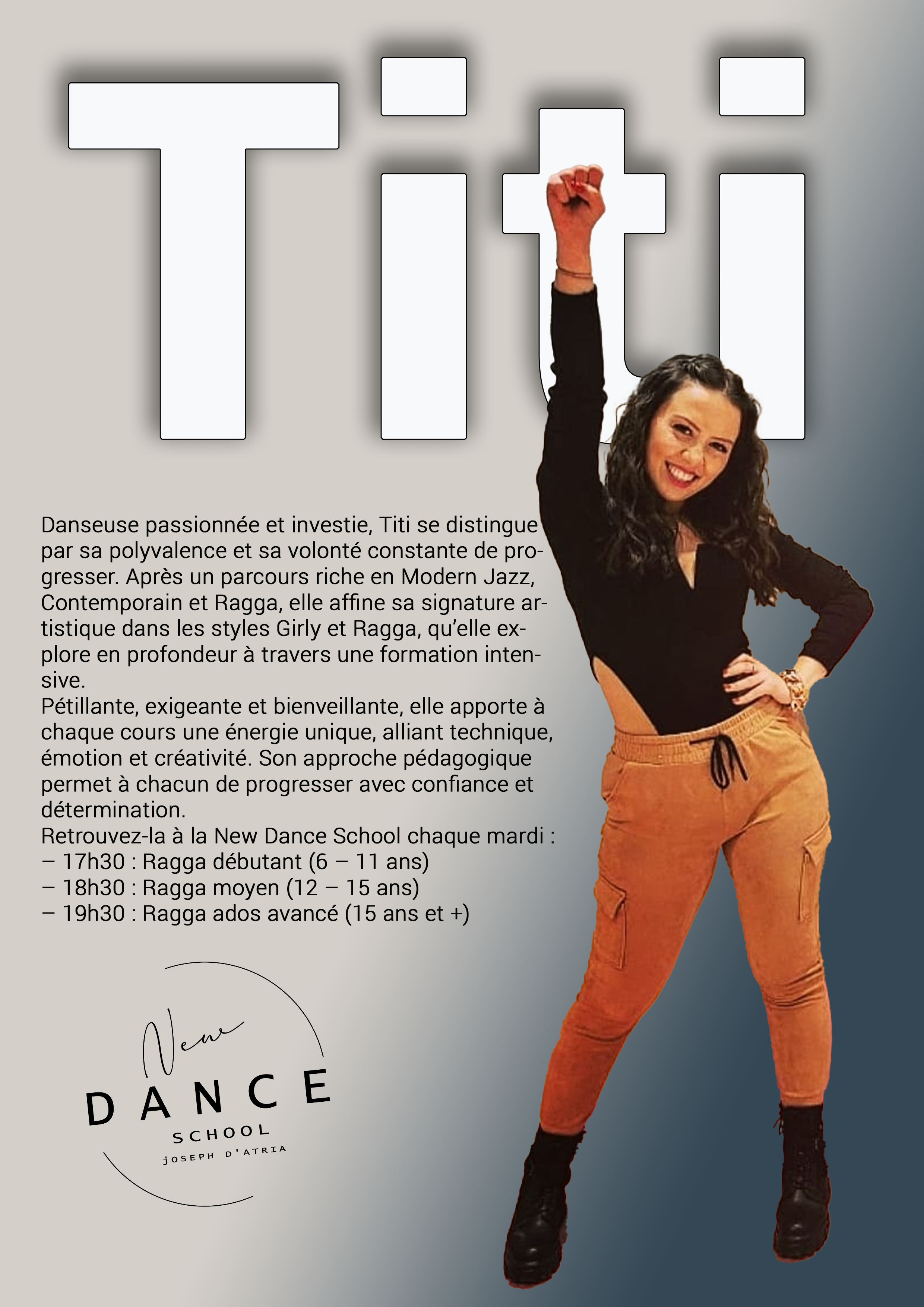 Le Girly est un mélange subtil entre la danse moderne, le hip-hop, le ragga et le jazz, tout en mettant en valeur l'expression corporelle et la féminité. Il s’adresse à toutes celles et ceux qui souhaitent bouger avec assurance, élégance et puissance. |
